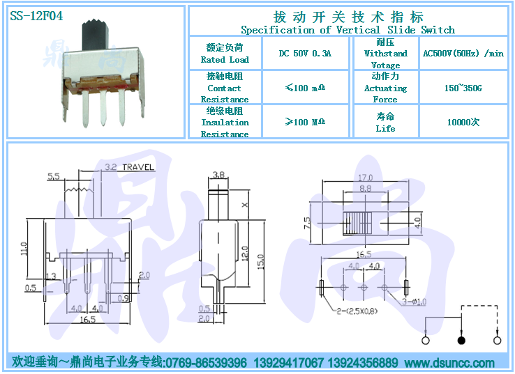 圖紙下載 產(chǎn)品型號(hào):SS-12F04 產(chǎn)品名稱:拔動(dòng)開關(guān)Slide Switch