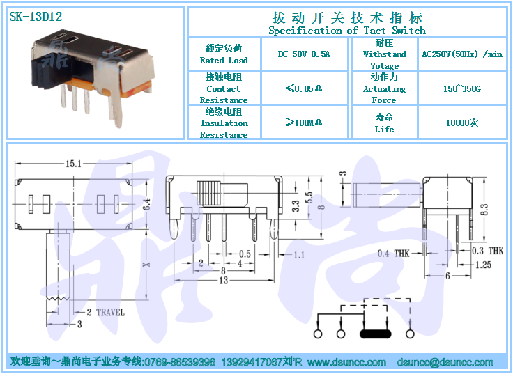 產(chǎn)品名稱:Horizontal Slide Switch 產(chǎn)品型號:SK-13D12